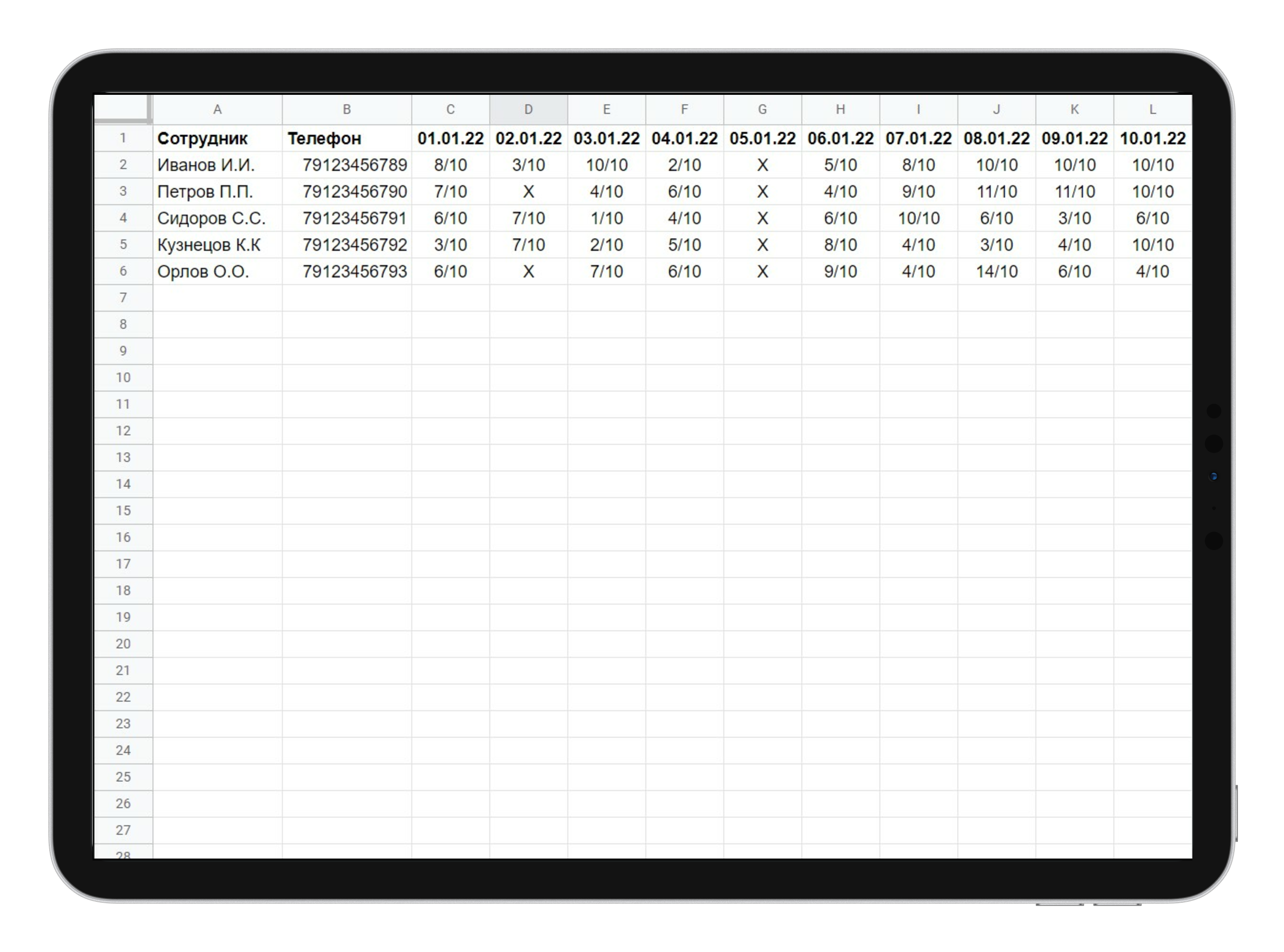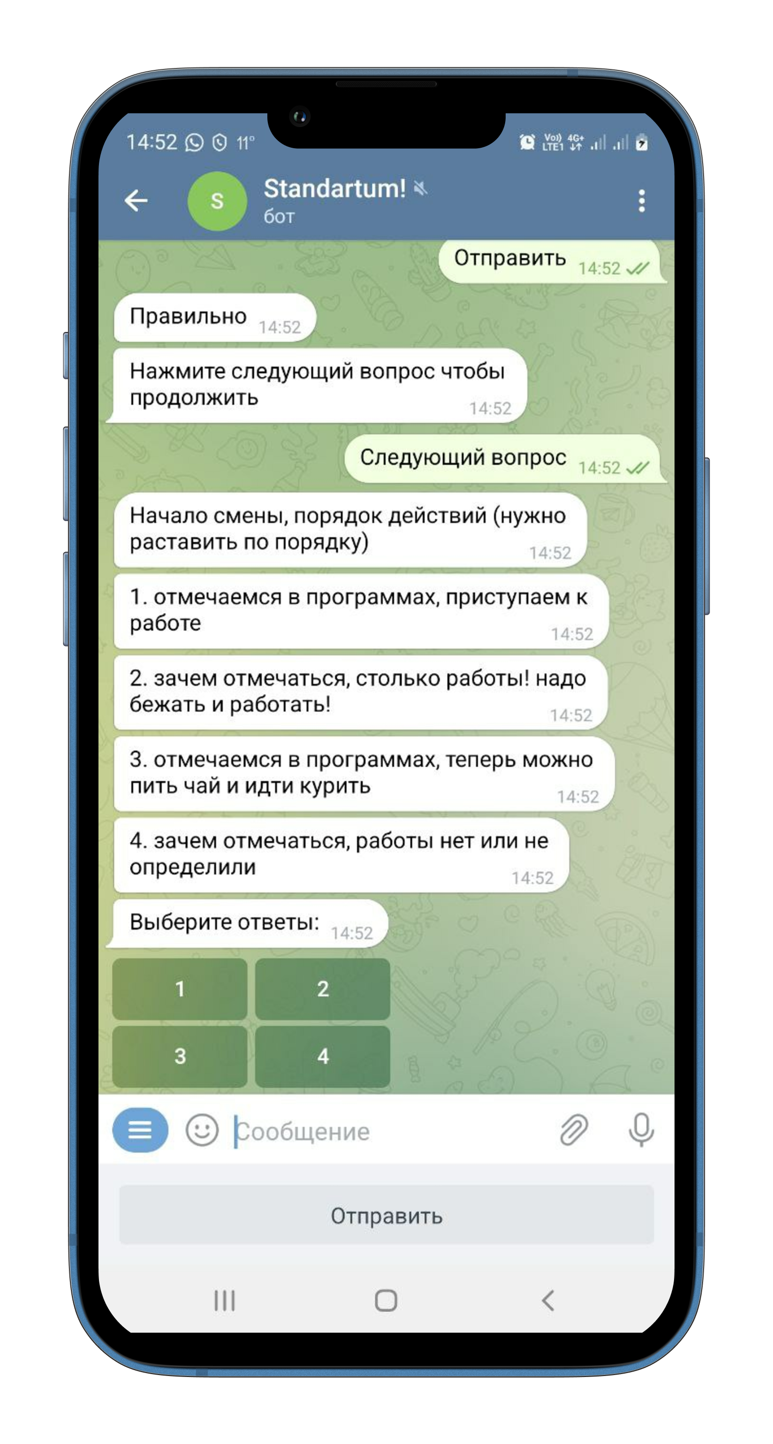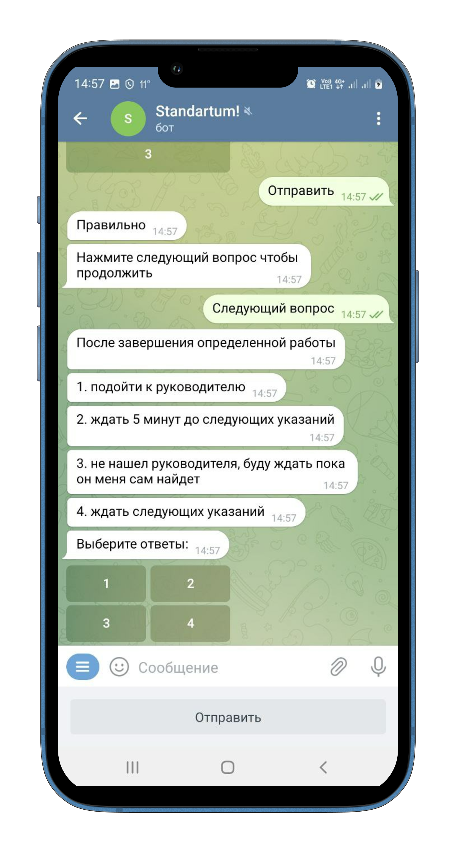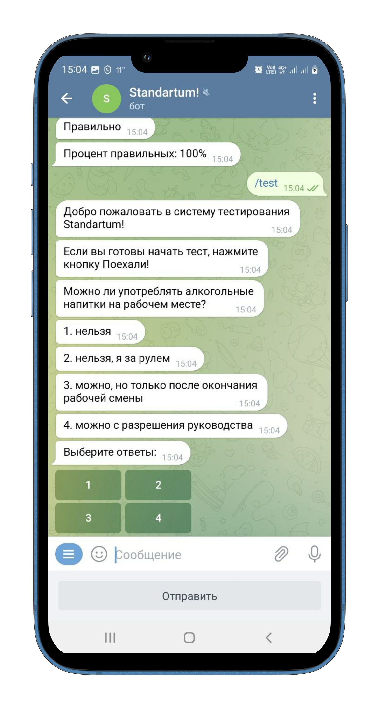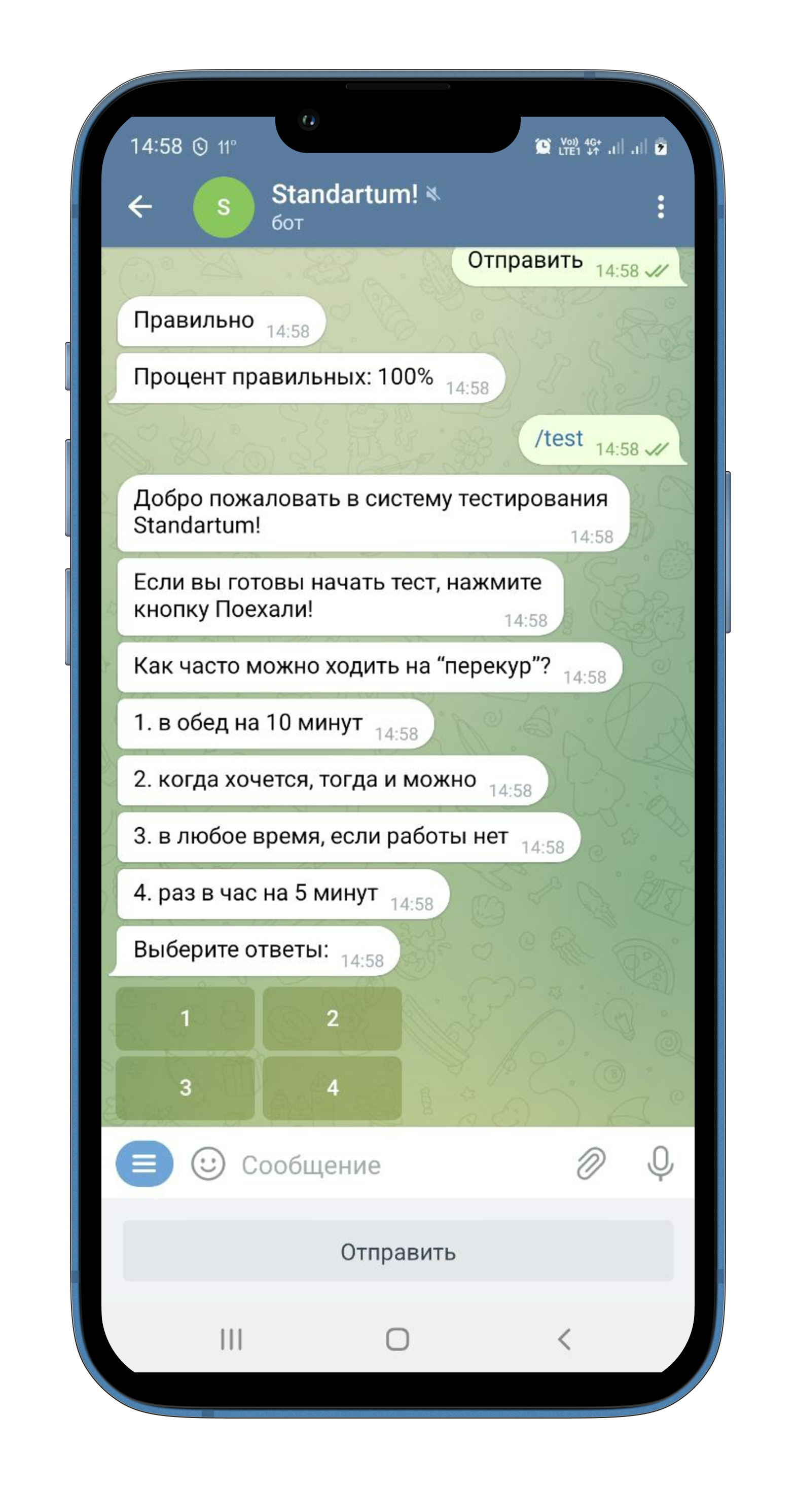 Руководители могут получать отчеты о прохождении сотрудниками тестов на e-mail или в мессенджеры